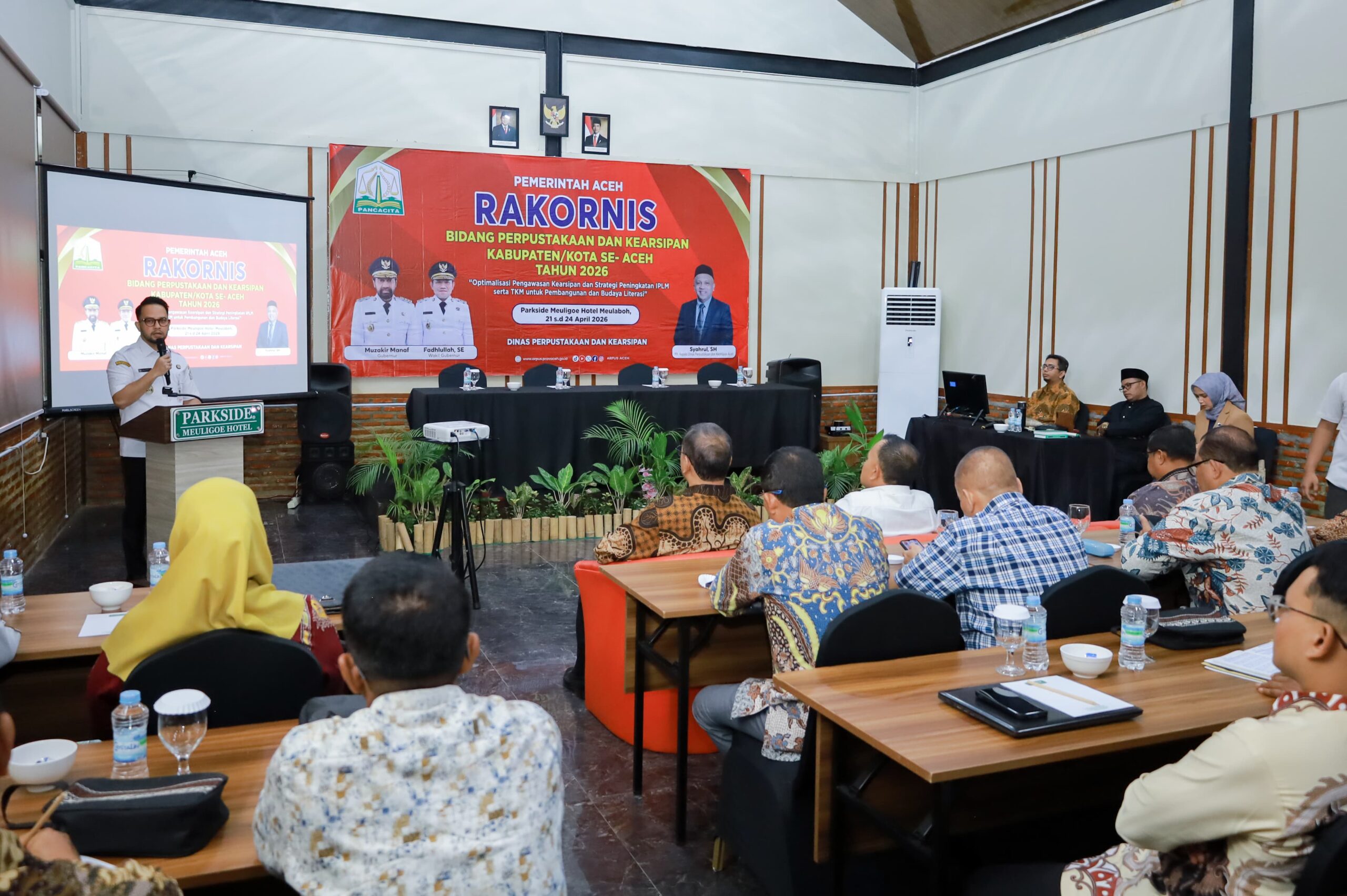 Rakornis Bidang Perpustakaan dan Kearsipan Tahun 2026 ini berlangsung selama empat hari, mulai 21 hingga 24 April 2026, dengan agenda utama meliputi optimalisasi pengawasan kearsipan, strategi peningkatan Indeks Pembangunan Literasi Masyarakat (IPLM), serta penguatan Tingkat Kegemaran Membaca (TKM) sebagai bagian dari pembangunan budaya literasi di Aceh.