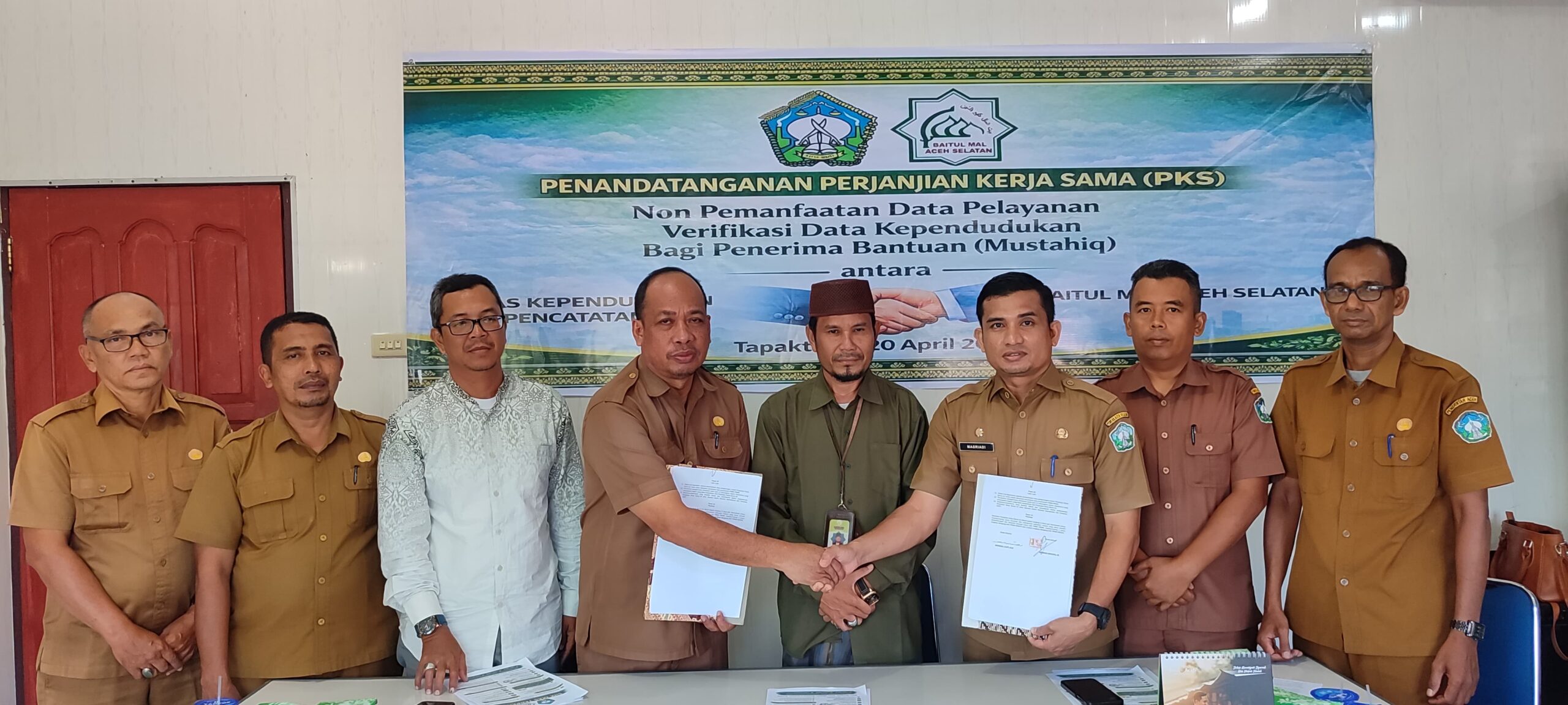 Baitul Mal Kabupaten Aceh Selatan bersama Dinas Kependudukan dan Pencatatan Sipil (Disdukcapil) resmi meluncurkan SIM-MAS TERPADU (Sistem Integrasi Layanan Mustahiq, Masyarakat, dan Administrasi Kependudukan) melalui penandatanganan Perjanjian Kerja Sama (PKS) yang berlangsung di Kantor Disdukcapil Aceh Selatan, Senin (20/4/2026).