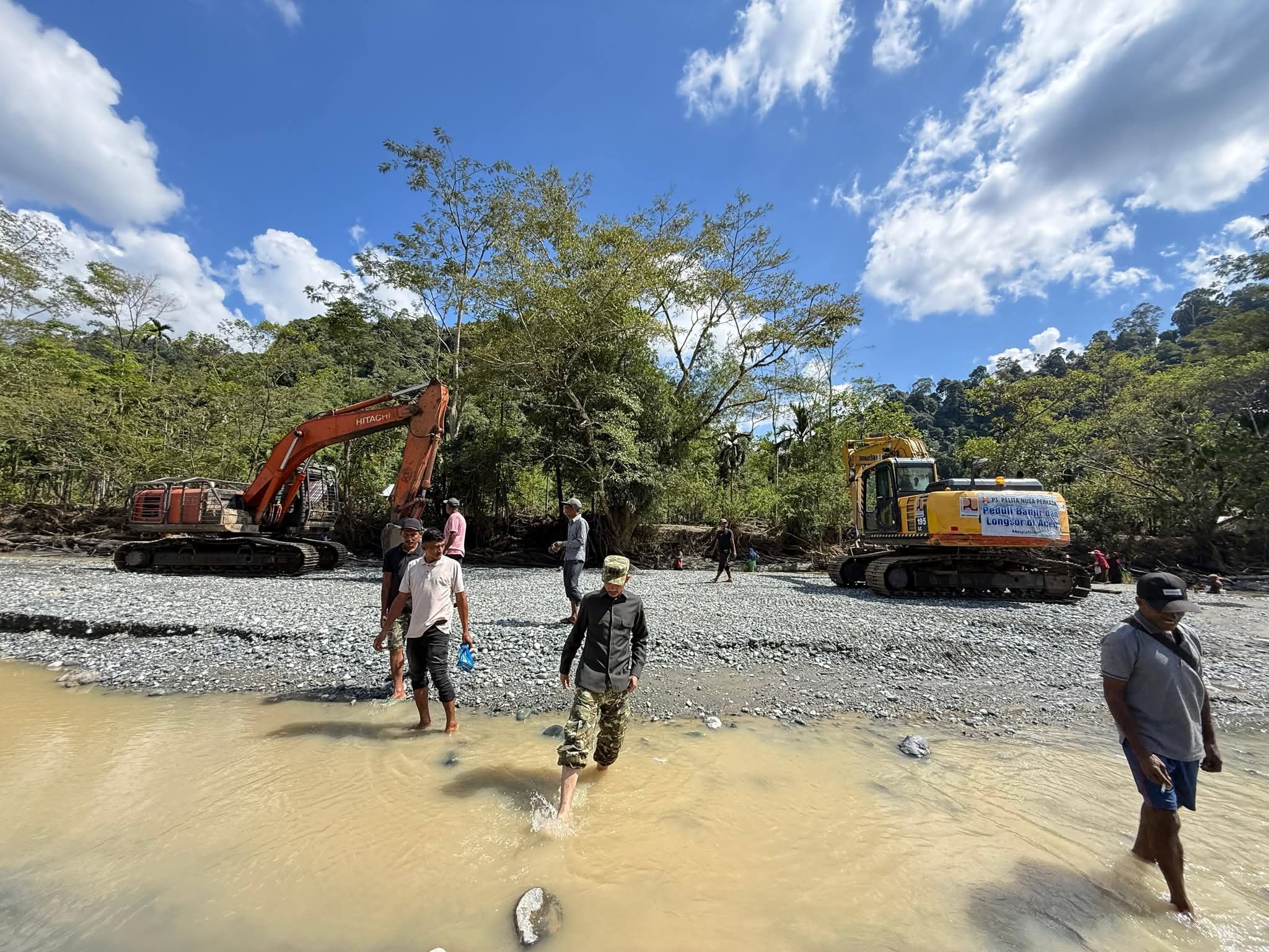 “Ada beberapa titik yang harus dialihkan aliran sungai dan ditimbun jalan yang putus di pinggir tebing. Saat hujan deras, air sungai meluap dan tanggul pun jebol lagi. Jadi kami harus menunggu air surut untuk melanjutkan pekerjaan,” kata Tarmizi.