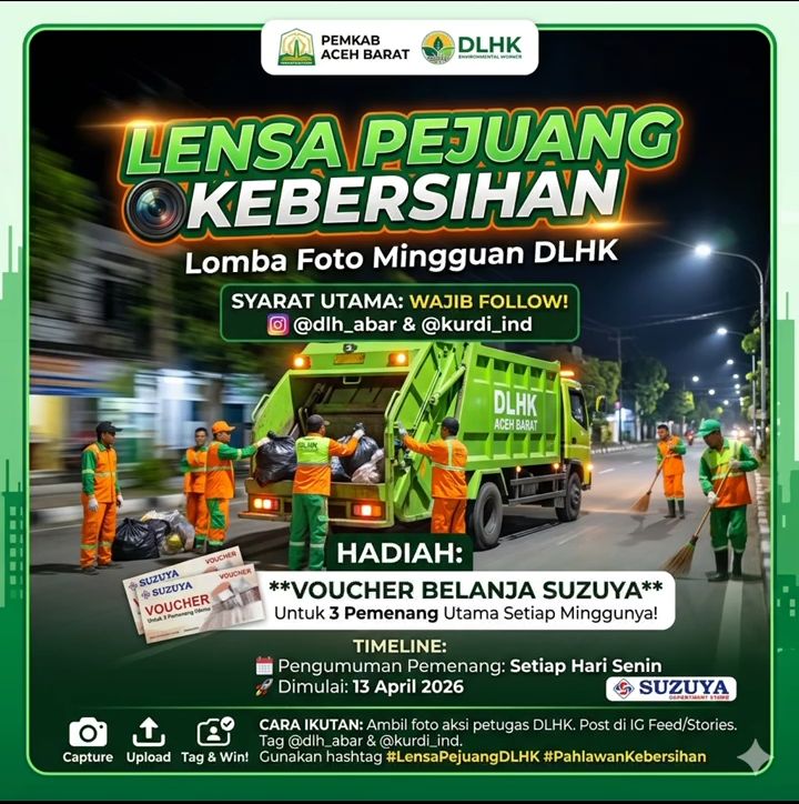 Aceh Barat, Independen News – Dinas Lingkungan Hidup dan Kebersihan (DLHK) Kabupaten Aceh Barat meluncurkan program kreatif bertajuk “Lensa Pejuang Kebersihan”, sebuah lomba foto mingguan yang bertujuan meningkatkan kesadaran masyarakat terhadap pentingnya menjaga kebersihan lingkungan.