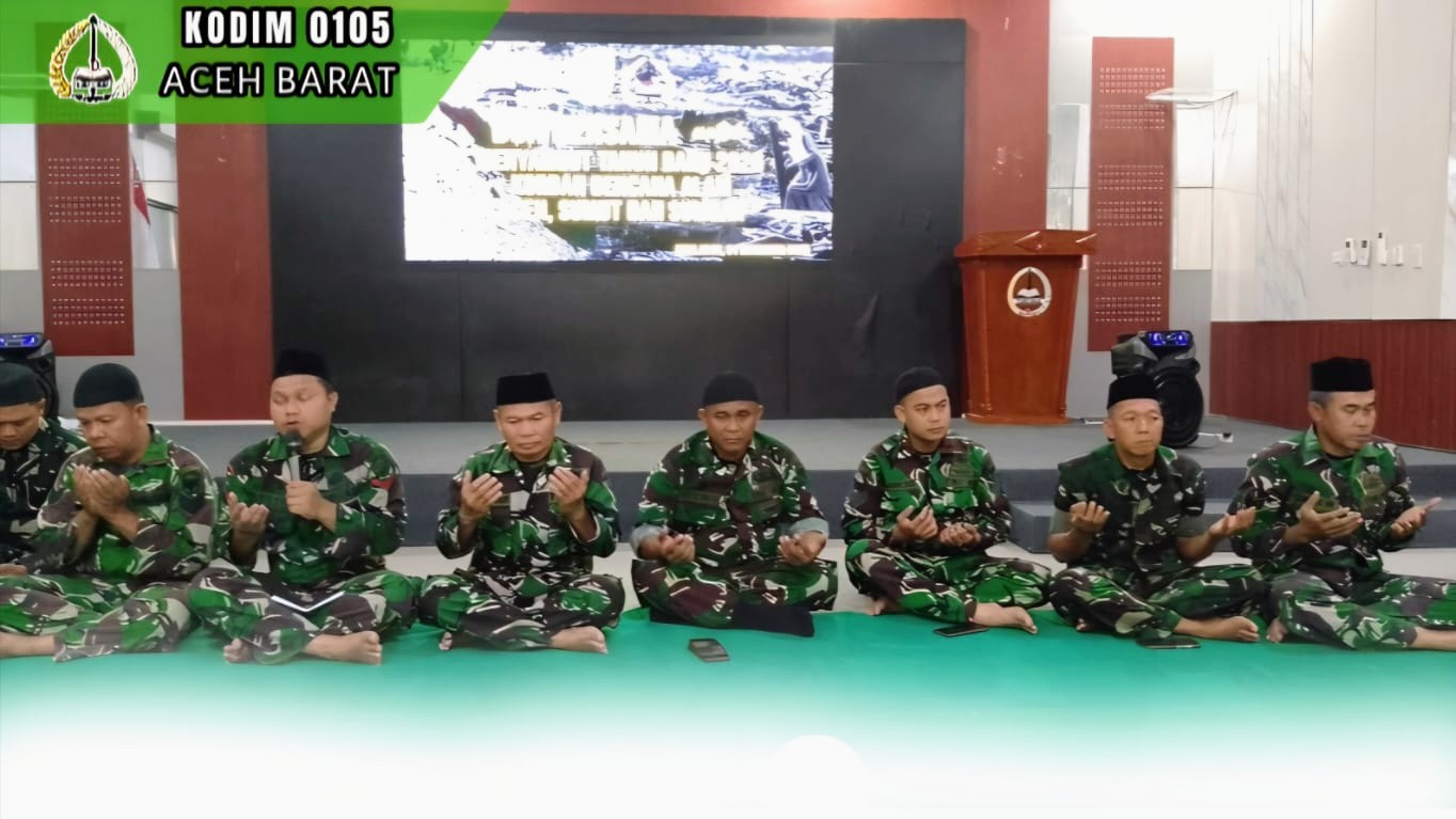 Aceh Barat, Independen News – Guna mencari keberkahan dan keridhoan kepada Allah SWT diawal Tahun 2026, Prajurit Kodim 0105/Abar melaksanakan kegiatan do’a bersama di Aula Makodim setempat Jalan Imam Bonjol Desa Drien Rampak Kecamatan Johan Pahlawan, Kamis (1/1/2026)