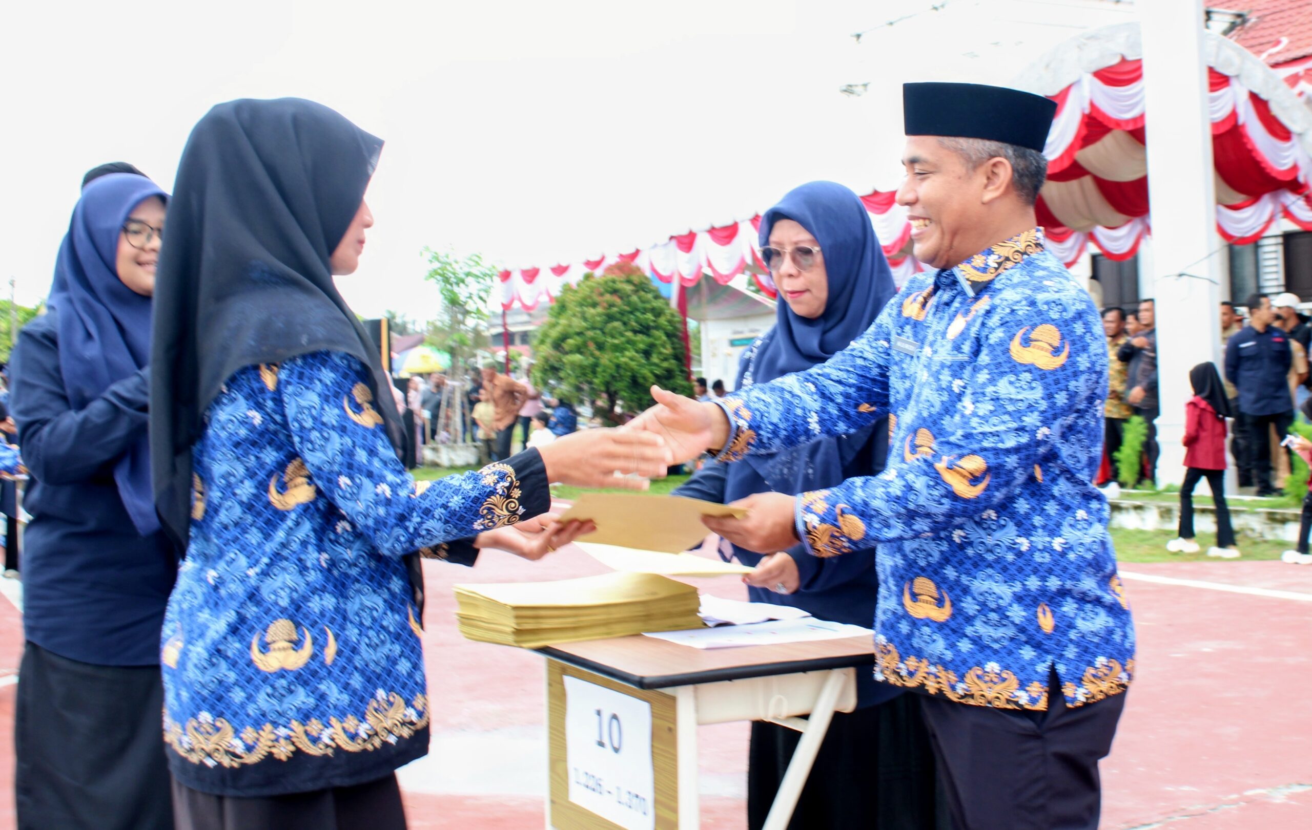 Ia menyampaikan ucapan selamat sekaligus pesan moral agar seluruh aparatur yang telah menerima SK benar-benar menjalankan tugas dengan penuh tanggung jawab dan keikhlasan.