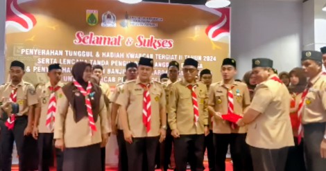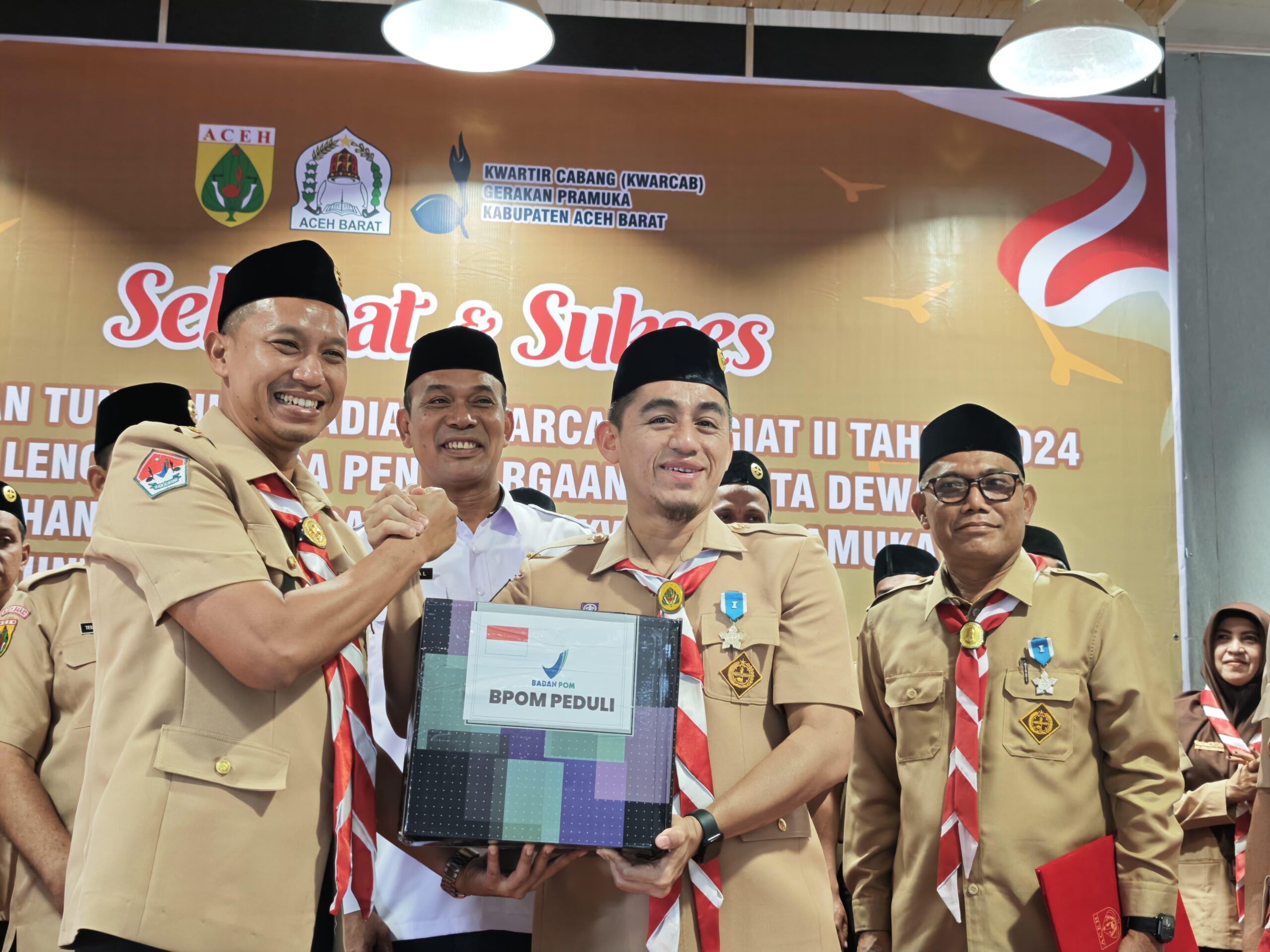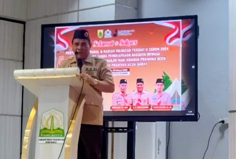 Aceh Barat, Independen News – Suasana haru dan bangga menyelimuti Aula Cabang Dinas Pendidikan (Cabdin) Aceh Barat, Rabu (25/2/2026), saat berlangsung acara penyerahan Tunggul dan hadiah Kwartir Cabang (Kwarcab) Tergiat II Tahun 2024, sekaligus pemberian lencana tanda penghargaan anggota dewasa serta penyerahan bantuan bencana banjir dari Kwarda Pramuka Aceh kepada Kwarcab Pramuka Aceh Barat.