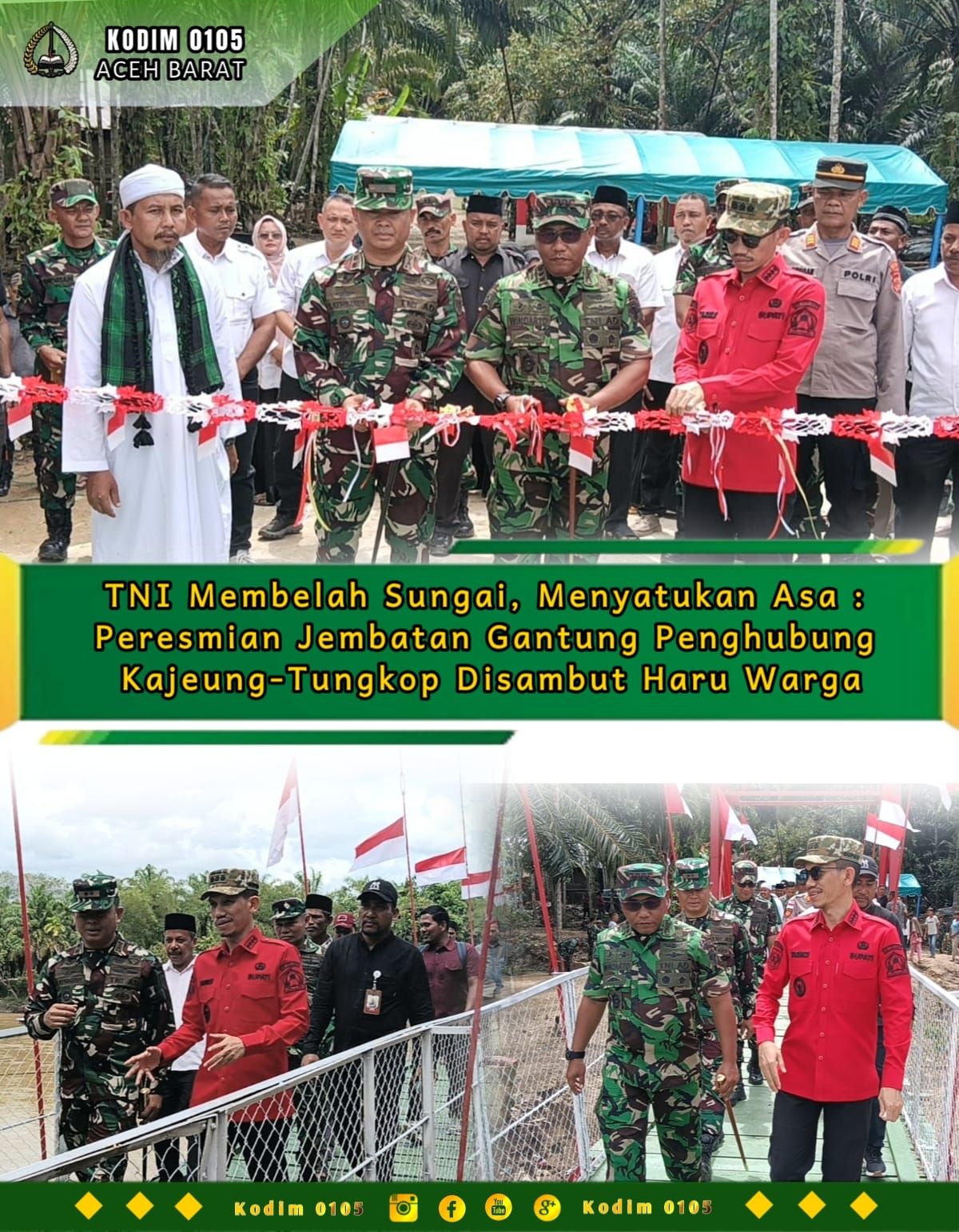 “Ini adalah bukti bahwa negara hadir untuk rakyat. Mari kita manfaatkan dan rawat jembatan ini dengan sebaik-baiknya agar dapat meningkatkan kesejahteraan masyarakat,” ujar Danrem